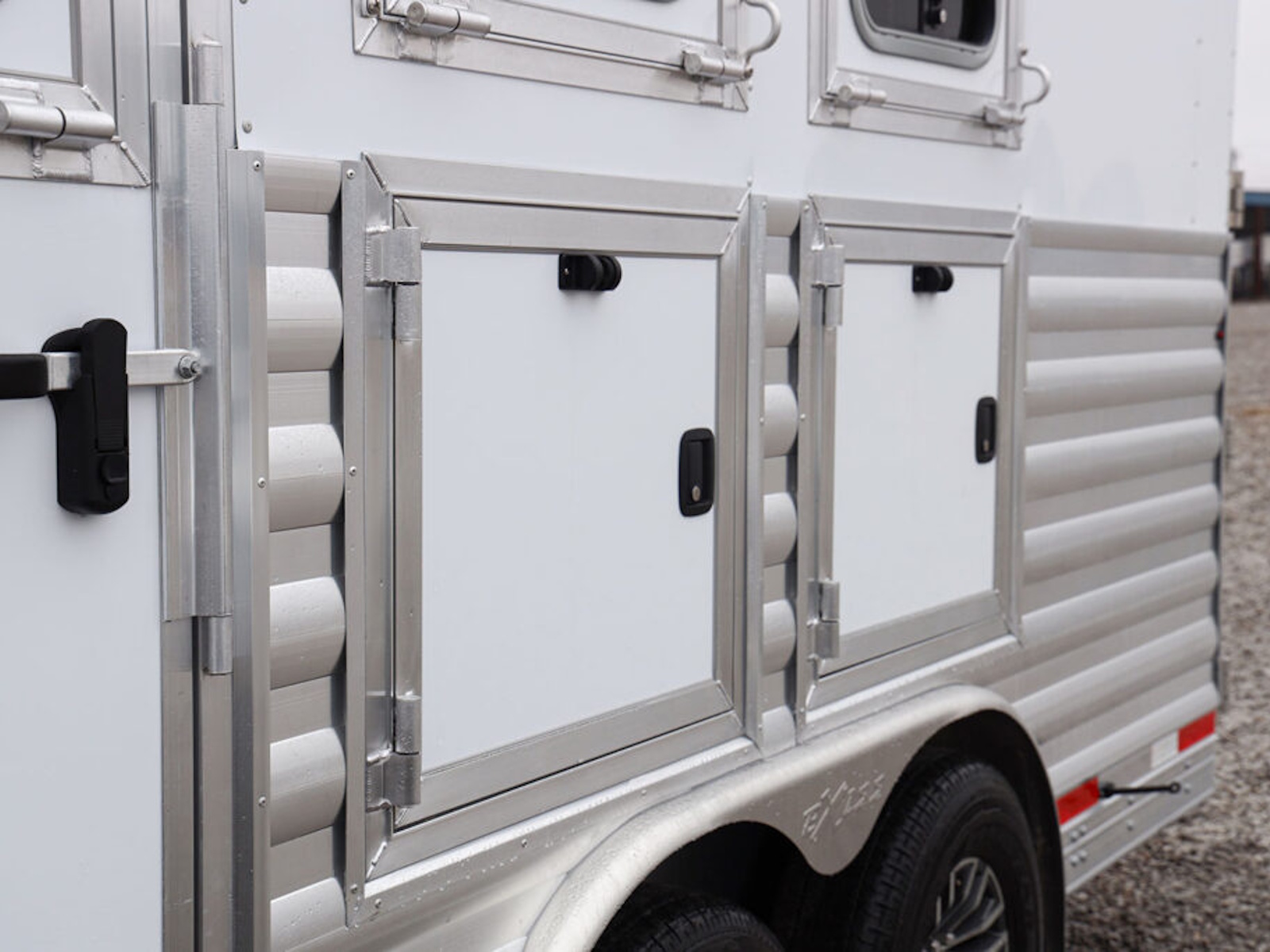 50/50 rear doors w/ 19" x 26" window on load door; Dual cam locks w/ lockable hasp on rear doors