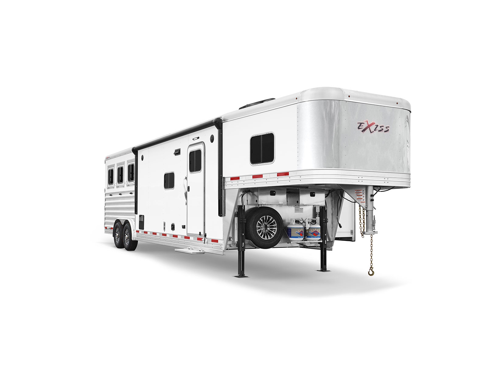 • Every Exiss gooseneck trailer features an 8’ long nose that maximizes storage capacity inside the trailer and helps to make for better turning radius for tow vehicles. The tapered nose helps to increase fuel efficiency and has a more aerodynamic profile than other similar trailers.