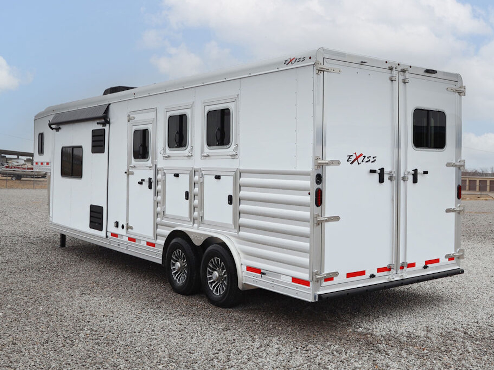 The 12' short wall models for the family of Exiss 8' wide living quarters horse trailers provide a high-value solution for horse owners that want an all-aluminum trailer with a large and comfortable living quarters and a horse area with industry-leading features. Available in 3 and 4 horse models, these trailers feature all of the essentials that you need for traveling comfortably and safely. And horse owners can choose from one of our new interior decor packages - Brownstone Latte, Glacier Ash or Urban Saddle.